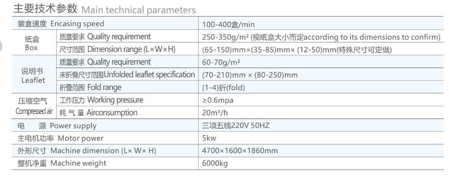本產(chǎn)品是我公司結(jié)合國(guó)外裝盒機(jī)的先進(jìn)技術(shù)及根據(jù)國(guó)內(nèi)制藥行業(yè)的實(shí)際情況而研發(fā)的擁有新型,具有先進(jìn)的連續(xù)式高速多功能自動(dòng)裝盒機(jī),是機(jī)、電、氣、光一體化的高科技產(chǎn)品。本產(chǎn)品適用于鋁塑藥板、枕包袋、瓶、口服液、鋁/塑管、面膜、及各類(lèi)電子、日用品等以及相類(lèi)似物品的裝盒包裝,具有自動(dòng)完成使用說(shuō)明書(shū)的折疊、紙盒自動(dòng)打開(kāi)、物品裝盒、打印批號(hào)、封盒等功能。該機(jī)可以單獨(dú)使用亦可以與其他設(shè)備聯(lián)動(dòng)使用,形成聯(lián)動(dòng)生產(chǎn)線。